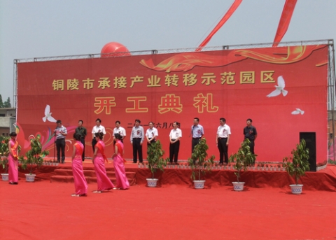 2011年6月8日上午陽光和煦、微風徐徐,東聯(lián)鄉(xiāng)永太路施工現(xiàn)場花團錦簇,彩旗飄揚。銅陵市承接產(chǎn)業(yè)轉(zhuǎn)移示范園區(qū)工程建設開工奠基儀式在這里隆重舉行。
