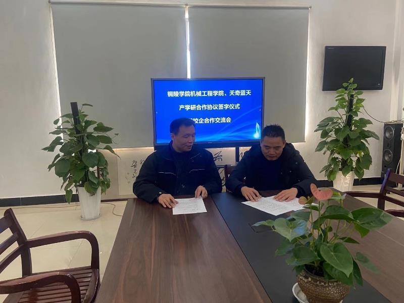 2020年12月15日上午,銅陵學(xué)院機(jī)械工程學(xué)院與我公司簽署戰(zhàn)略合作協(xié)議儀式在綜合樓一樓會(huì)議室隆重舉行。出席儀式有天奇藍(lán)天總經(jīng)理章愛(ài)前、財(cái)務(wù)部長(zhǎng)丁繼剛、技術(shù)總工程師范守廣、技術(shù)部長(zhǎng)吳光強(qiáng)、及綜合部部長(zhǎng)施樂(lè)勤等,銅陵學(xué)院機(jī)械工程學(xué)院王涇文院長(zhǎng),夏兆清書記等出席戰(zhàn)略合作協(xié)議簽約儀式。 會(huì)上,天奇藍(lán)天公司章總代表公司向各位校領(lǐng)導(dǎo)的到來(lái)表示熱烈的歡迎,并介紹了我公司生產(chǎn)經(jīng)營(yíng)情況。他希望校企雙方根據(jù)戰(zhàn)略合作協(xié)議,加快開(kāi)展實(shí)質(zhì)性、規(guī)范化、系統(tǒng)化的合作步伐,通過(guò)相互交流,通過(guò)產(chǎn)學(xué)研深度融合,實(shí)現(xiàn)雙方事業(yè)邁上新臺(tái)階。 銅陵學(xué)院機(jī)械工程學(xué)院王院長(zhǎng)首先代表學(xué)院對(duì)天奇藍(lán)天公司邀請(qǐng)和支持表示感謝。他在講話中指出,愿意推進(jìn)與天奇藍(lán)天公司的深度合作,開(kāi)展科產(chǎn)業(yè)的相互合作,共同推進(jìn)經(jīng)濟(jì)社會(huì)的發(fā)展。 會(huì)后,天奇藍(lán)天公司章總和銅陵學(xué)院機(jī)械工程學(xué)院王院長(zhǎng)簽署了產(chǎn)學(xué)研合作協(xié)議, 本次成功簽約標(biāo)志著我公司與銅陵學(xué)院機(jī)械工程學(xué)院進(jìn)入深度合作的階段,未來(lái)將在產(chǎn)、學(xué)、研等各方面共同創(chuàng)新發(fā)展。 |