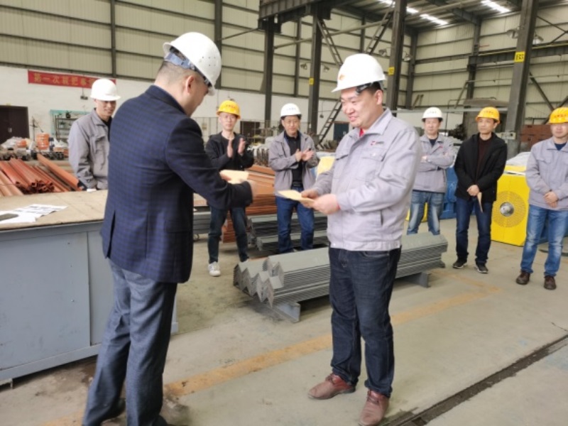 2021年4月2日中午12:15分,天奇藍天公司高管及先進班組和節(jié)約獎獲得者近30人在三號廠房“橫梁班”現(xiàn)場召開了一場別開生面的表彰大會。 首先,由公司總經(jīng)理章愛前對三月份在“先進班組”考核中優(yōu)勝的“許世艷班組”和“谷昆明班組”授予了先進班組流動紅旗和獎金,并對2020年受股份公司表彰的姚中華、翟宏維、滕軍波、李文四名標兵頒發(fā)榮譽證書和獎金。章總還對在三月份節(jié)約材料專項工作中表現(xiàn)突出的周勇、李磊等六名同志頒發(fā)獎金。 我公司在今年伊始,面對原輔材料漲價和用工緊張的雙重壓力,積極應對,著實圍繞生產(chǎn)成本練習內(nèi)功,號召廣大員工從節(jié)約“一度電”、“一滴水”、“一寸鐵”入手,自覺參與節(jié)約原材料活動,并及時做好該次活動的組織和評選工作。 此次我公司將先進表彰會的會場移到生產(chǎn)車間一線,就是要號召更多的員工投入到生產(chǎn)勞動競賽和節(jié)約原材料這兩項活動當中去,積極弘揚主人翁精神和愛崗敬業(yè)的主旋律,為全面完成今年的生產(chǎn)經(jīng)營指標而努力工作。 |