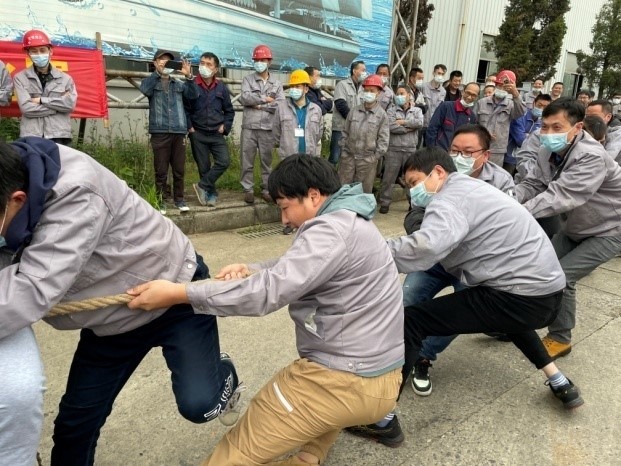 為豐富全體職工的精神文化生活,增強(qiáng)集團(tuán)公司凝聚力,公司于 2022年4月30日舉辦慶“五一〞拔河比賽。每支代表隊(duì)都顯示出最強(qiáng)的比賽陣容,齊心協(xié)力,勇爭第一。 當(dāng)比賽的哨聲響起,隊(duì)員們口中一起高呼著“一二!一二”,雙手緊握長繩,憋足了勁拼命往后拉,公司領(lǐng)導(dǎo)也在隊(duì)伍旁邊助陣加油,未參賽的員工自發(fā)組成啦啦隊(duì)為比賽隊(duì)員吶喊加油,號子聲、吶喊聲,此起彼伏,飄蕩在上空。