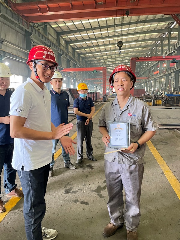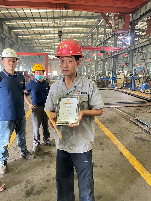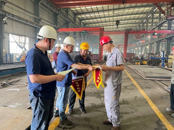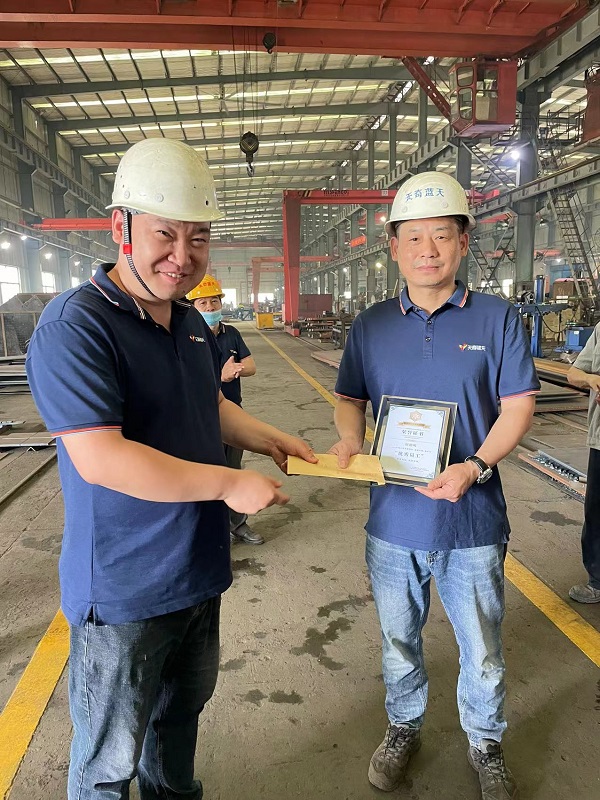 6月2日上午11時,天奇藍天公司在生產(chǎn)現(xiàn)場召開了一場表彰大會。 首先,由公司總經(jīng)理助理施樂勤對五月份在“先進班組”考核中優(yōu)勝的“下料車間曹軍班組”和“裝配朱長生班組”授予了先進班組流動紅旗和獎金,并對2021年受股份公司表彰的“優(yōu)秀員工”阮德明、朱風巧及“崗位標兵”谷昆明、姚鎮(zhèn)四名同志頒發(fā)榮譽證書和獎金。 企業(yè)穩(wěn)健發(fā)展離不開全體員工的辛勤付出,希望受表彰的優(yōu)秀員工,戒驕戒躁,發(fā)揮模范作用,在今后的工作中再接再厲、全力以赴、爭創(chuàng)佳績。愿和諧、互勉、共同進步的氣氛長存;讓企業(yè)文化扎根在每一位員工的心中。